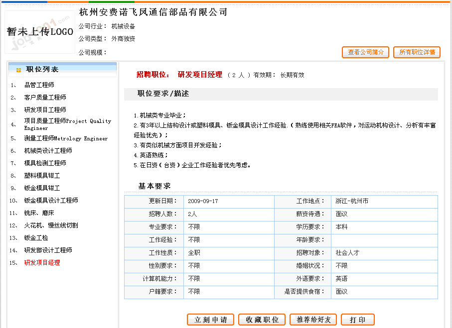2) 點(diǎn)擊任意一個(gè)職位,然后點(diǎn)擊"立刻申請(qǐng)"